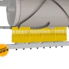 Arcus secundaire schraper met hardmetaal – Een paraboolvormige schraper met zeer effectieve reinigende werking. Arcus secundaire schraper 9800 met schrapersegmenten van polyurethaan met ingebed hardmetaal. De segmenten zijn gemonteerd in een boog die zich naar boven uitstrekt tegen de band onder de aandrijftromme. Dankzij de maximale schraapdruk in het midden van de band is de reinigende werking zelfs bij versleten, komvormige banden zeer effectief. Onze unieke veerspanner zorgt ervoor dat de juiste druk tegen de band behouden blijft, wat servicewerkzaamheden vereenvoudigt en onderhoud vermindert. De secundaire schraper wordt onder de aandrijftrommel geplaatst.