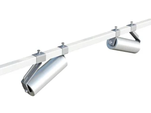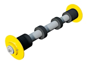 De discus sluit de transportband op op de retourrol en bevordert de rechte loop van de band.