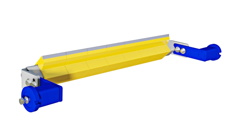 De Mobile secundaire bandreiniger 9600 is een robuuste ontworpen voor mobiele breekinstallaties. De schraper kan uiteraard ook in vaste installaties worden gebruikt. Elk schrapersegment is gemaakt van polyurethaan en heeft een ingegoten hardmetalen mes voor een uitstekend reinigend effect en duurzaamheid. De schraper wordt op zijn plaats gehouden door twee torsie-elementen die tevens als houder dienen. De druk van het hardmetalen mes tegen de band kan nauwkeurig en eenvoudig ingesteld worden De inbouwmaten van de schraper kunnen traploos worden aangepast. De secundaire bandschraper wordt onder de aandrijftrommel geplaatst.
