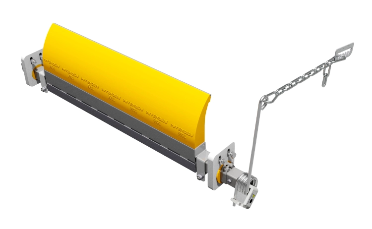 De unieke veerspanner van Vendig zorgt ervoor dat de juiste druk tegen de band wordt gehandhaafd, waardoor onderhoud wordt verminderd en de levensduur van zowel de schraper als de transportband wordt verlengd.